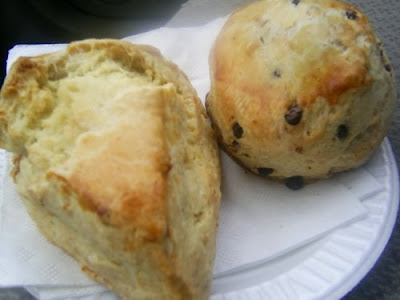 Pictured above are the Orange Scone and the Chocolate Chip Walnut Scone. Um, I ate the Lemon Cherry one before I remembered to take the photo...
